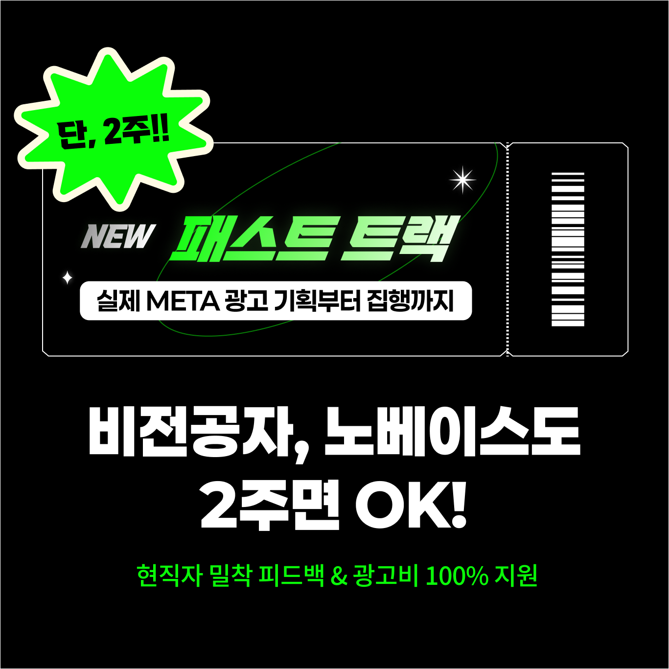 오늘은 그로스쿨에서 2주만에 실무 경험을 만들어서 포트폴리오를 만들어준다는 그로스쿨의 '패스트트랙 11기'를 진행한 후기에 대해서 남겨보려고 합니다! 아무래도 비전공자로써, 직무 변경 희망자(?)로써 가장 고민되는게 요즘 무조건 필수적이라는 '실무 경험' 과 '포트폴리오' 입니다. 저는 2주만에 메타 광고 실무 경험과 포트폴리오를 만들 수 있다는 그로스쿨 패스트트랙 11기에 참여했습니다!! 패스트트랙 관련된 제대로 된 후기가 없어서 과연 진짜로 광고 집행 경험을 얻을 수 있을지 제가 직접 신청해봤는데요!! 솔직한 찐찐찐 후기를 남깁니다 :)